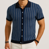 Aporta un aire atemporal a tu armario con el Polo Retro a Rayas Felix de Marmiri. Confeccionado en un hilo suave y transpirable con textura de punto refinada, este polo de manga corta y cierre completo de botones presenta rayas verticales de inspiración retro y detalles en contraste. Su diseño resistente a las arrugas y agradable al tacto lo convierte en una opción ideal para el uso diario con un toque vintage.